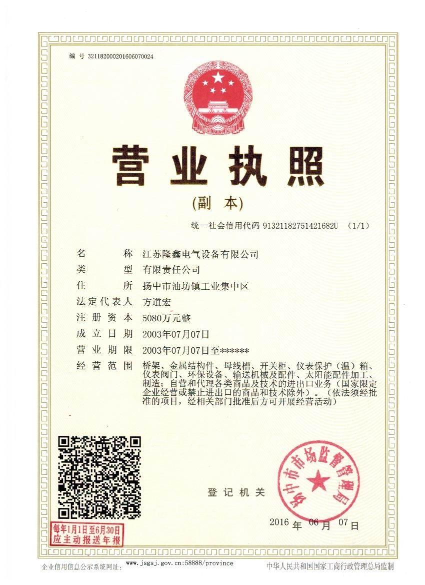 江蘇隆鑫電氣設(shè)備有限公司(原揚中市隆鑫電器設(shè)備有限公司)位于風(fēng)景秀麗的江南古城 ---- 鎮(zhèn)江東部揚子江畔,水陸交通便利。 本公司是中石化網(wǎng)絡(luò)成員企業(yè),是揚中橋架企業(yè),工業(yè)管道閥門、儀表管配件、母線槽、匯線橋架、玻璃鋼制品的專業(yè)生產(chǎn)廠家。 我公司一貫以經(jīng)營以管理為保證、以科技進步為動力,使產(chǎn)品的市場占有率不斷提高,公司正持續(xù)、穩(wěn)步、健康地向前發(fā)展,秉循“創(chuàng)造完美、服務(wù)用戶、奉獻(xiàn)社會”的經(jīng)營觀念,本公司生產(chǎn)的儀表管件及閥門系列產(chǎn)品、母線槽、電纜橋架幾乎覆蓋全國31個省、市、自治區(qū)的化工、冶金、交通、輕...